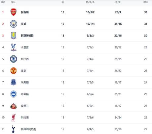 曼联获胜,战绩变成7胜4平4负,总积分达到25分,升到了第6名。这让争四格局更加混乱。曼联和身前的切尔西积分一样,只比欧冠区的水晶宫少1分,与第3名的阿斯顿维拉有5分的差距。 |